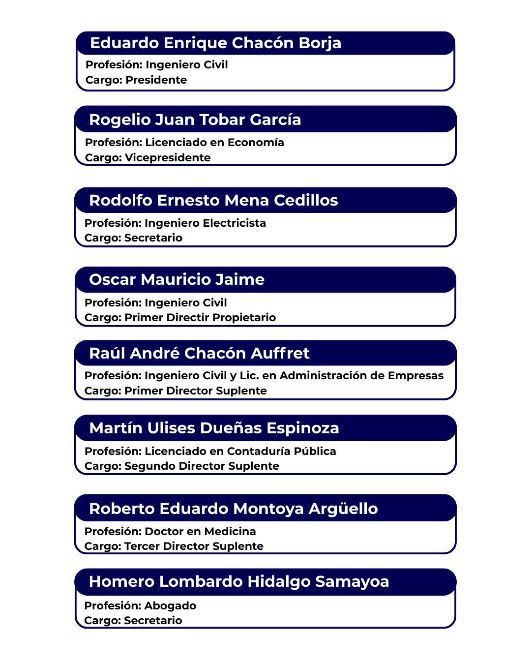 Miembros de la Junta Directiva propietarios y suplentes, para el período 2026-2033:
